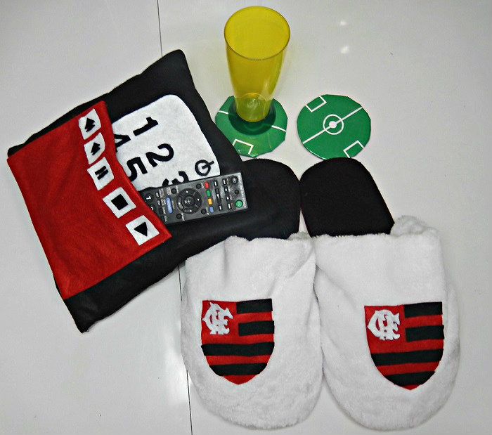 Aproveitando que deu uma esfriada no tempo eu fiz uma pantufa do time do meu pai que é o Flamengo (você para adaptar para o time do seu pai).
